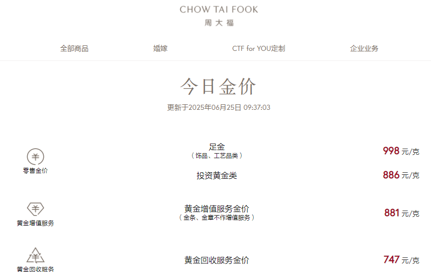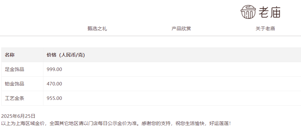 记者查询发现,受此影响,25日国内金饰价格普遍下跌,单克纷纷跌至千元前后。周大福足金价格为998元/克,单克较前一日下跌14元;老庙黄金为999元/克,单克较前一日下跌8元;老凤祥为1006元/克,较前一日下跌6元;周生生金饰价格为1005元/克,较前一日下跌8元。